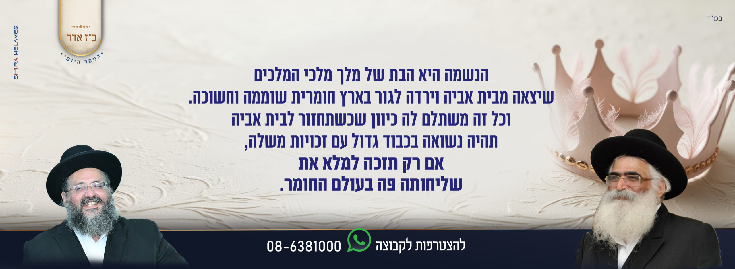 בואו וקחו חלק ושותפות במפעל האדיר הזה!