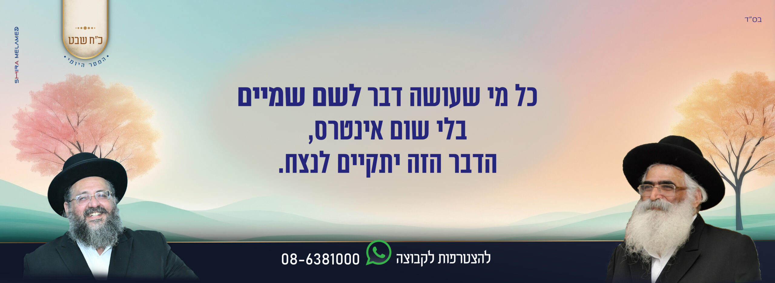 בואו וקחו חלק ושותפות במפעל האדיר הזה!
